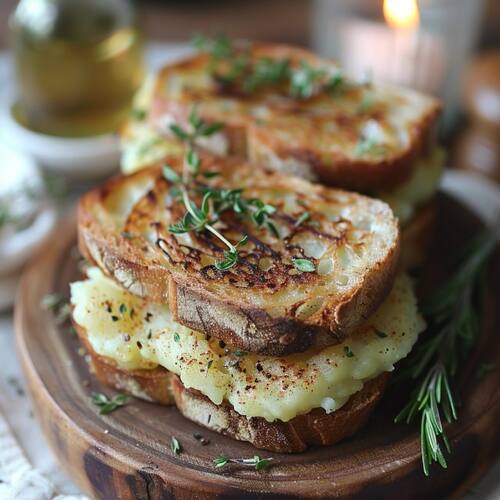 Potato Sandwich: Spiced mashed potatoes spread between bread slices and toasted for a crispy snack.