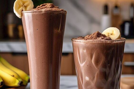 Protein Power Smoothie Milk or almond milk with protein powder, oats, and banana ideal post-workout fuel.
