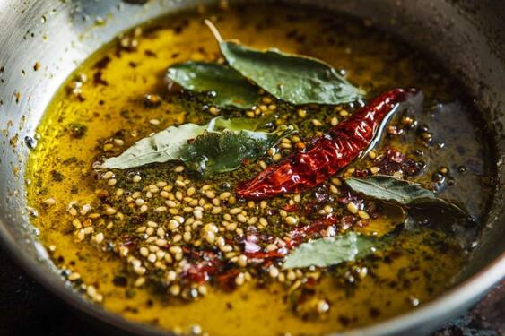 Grind coconut, green chilies, ginger, roasted chana dal, salt, and water to make a smooth chutney. Adjust the consistency and add curd if desired. Heat coconut oil and temper with mustard seeds, dried red chili, curry leaves, and asafoetida. Once fragrant, pour the tempering over the chutney and mix well. This enhances the aroma and adds authentic Kerala-style flavor. Serve with dosa, idli, or vada for a delicious South Indian experience.